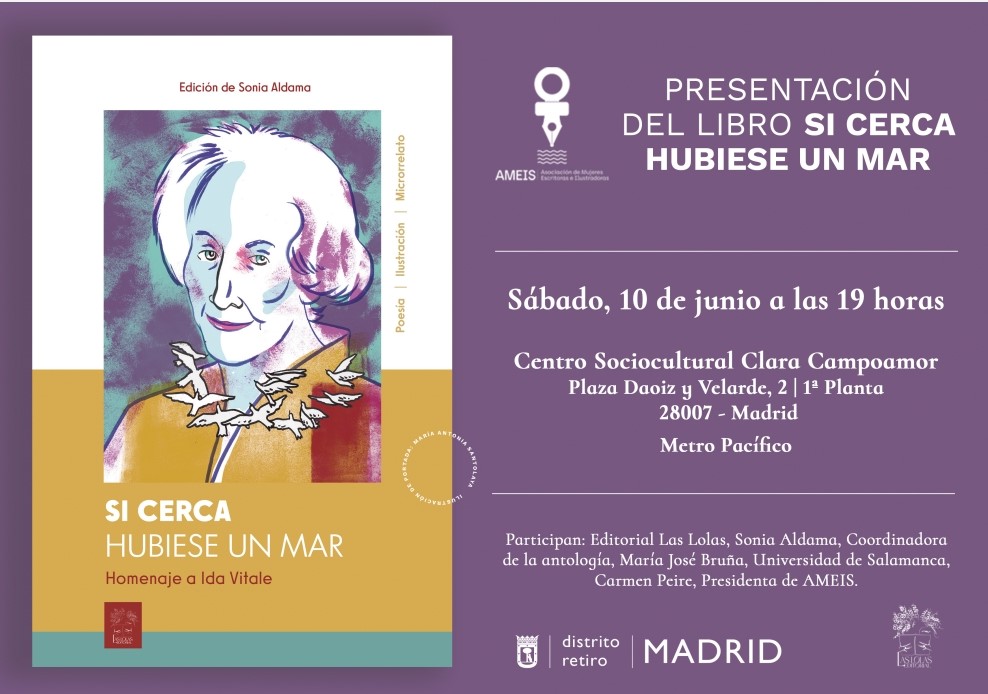 La Asociación de Mujeres Escritoras e Ilustradoras (AMEIS) presentará el sábado, 10 de junio su segunda antología, el acto se celebrará en el Centro Cultural Clara Campoamor de Madrid. Sonia Aldama, poeta y cofundadora de AMEIS se ha hecho cargo de la edición.