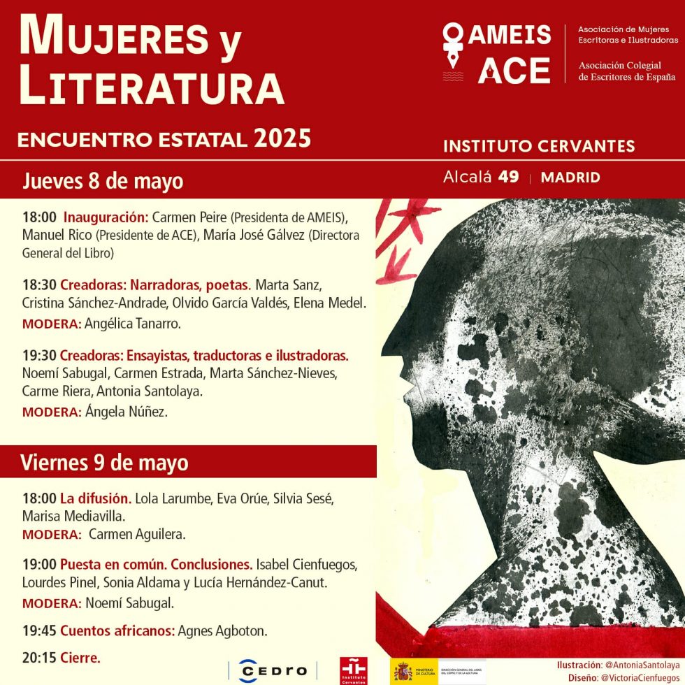 Madrid, 8 y 9 de mayo de 2025. El Instituto Cervantes acogerá el I Encuentro Estatal Mujeres y Literatura, una iniciativa sin precedentes organizada por la Asociación de Mujeres Escritoras e Ilustradoras (AMEIS) y la Asociación Colegial de Escritores (ACE), con el apoyo de CEDRO.